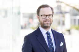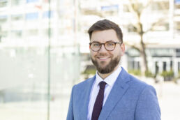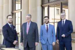 Die Anwälte der Kanzlei Fünfrock Marx vor ihrem Büro, fotografiert für ihre Webseite.